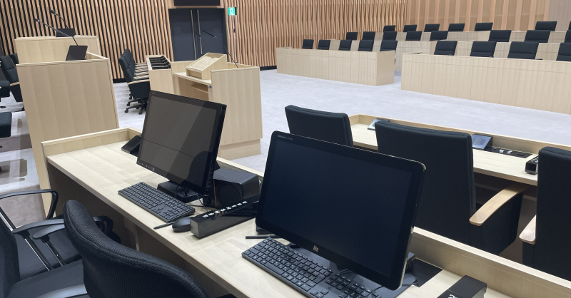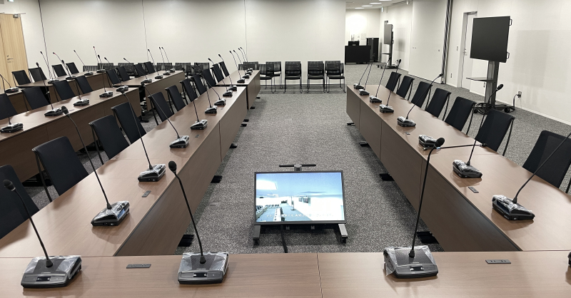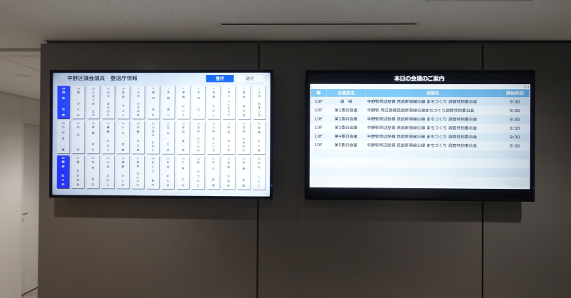 - 議場設備、音響映像、議場設備、出退表示、部屋前表示設備、難聴者支援設備