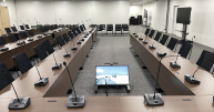 - 議場設備、音響映像、議場設備、出退表示、部屋前表示設備、難聴者支援設備